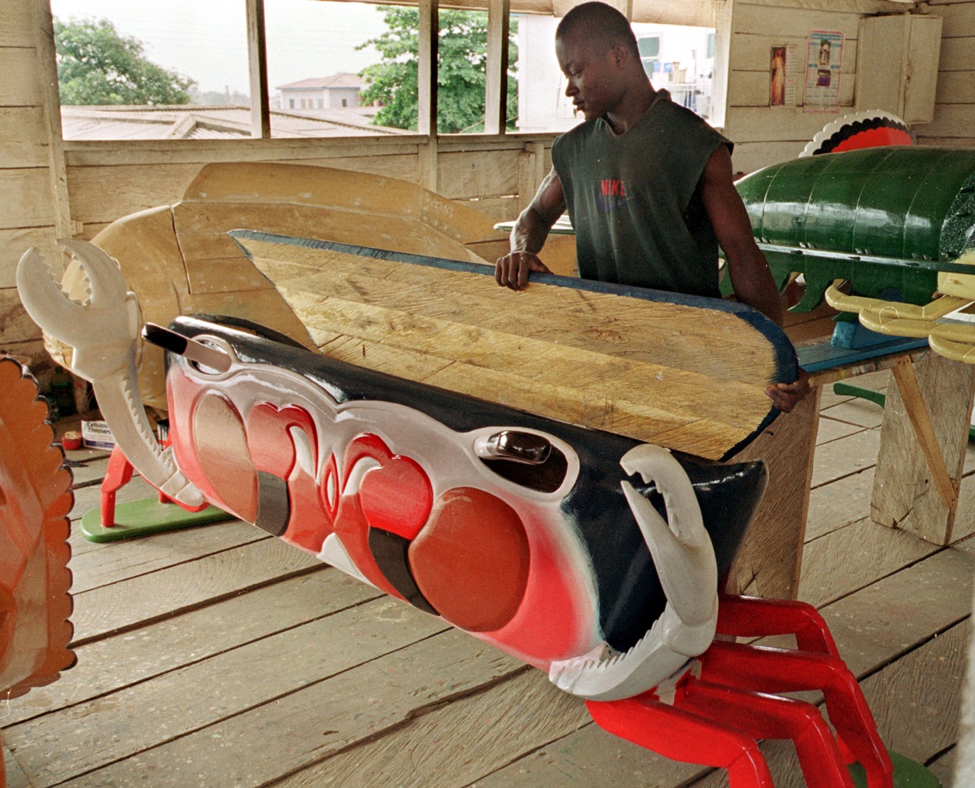 V Ghaně se smutek mění v oslavu života. Místo obyčejných rakví se tu vyrábějí barevné, fantazijní tvary – od ryb přes letadla až po lvy. Každý kus vypráví příběh zesnulého a proměňuje pohřeb v dojemnou i radostnou vzpomínku.