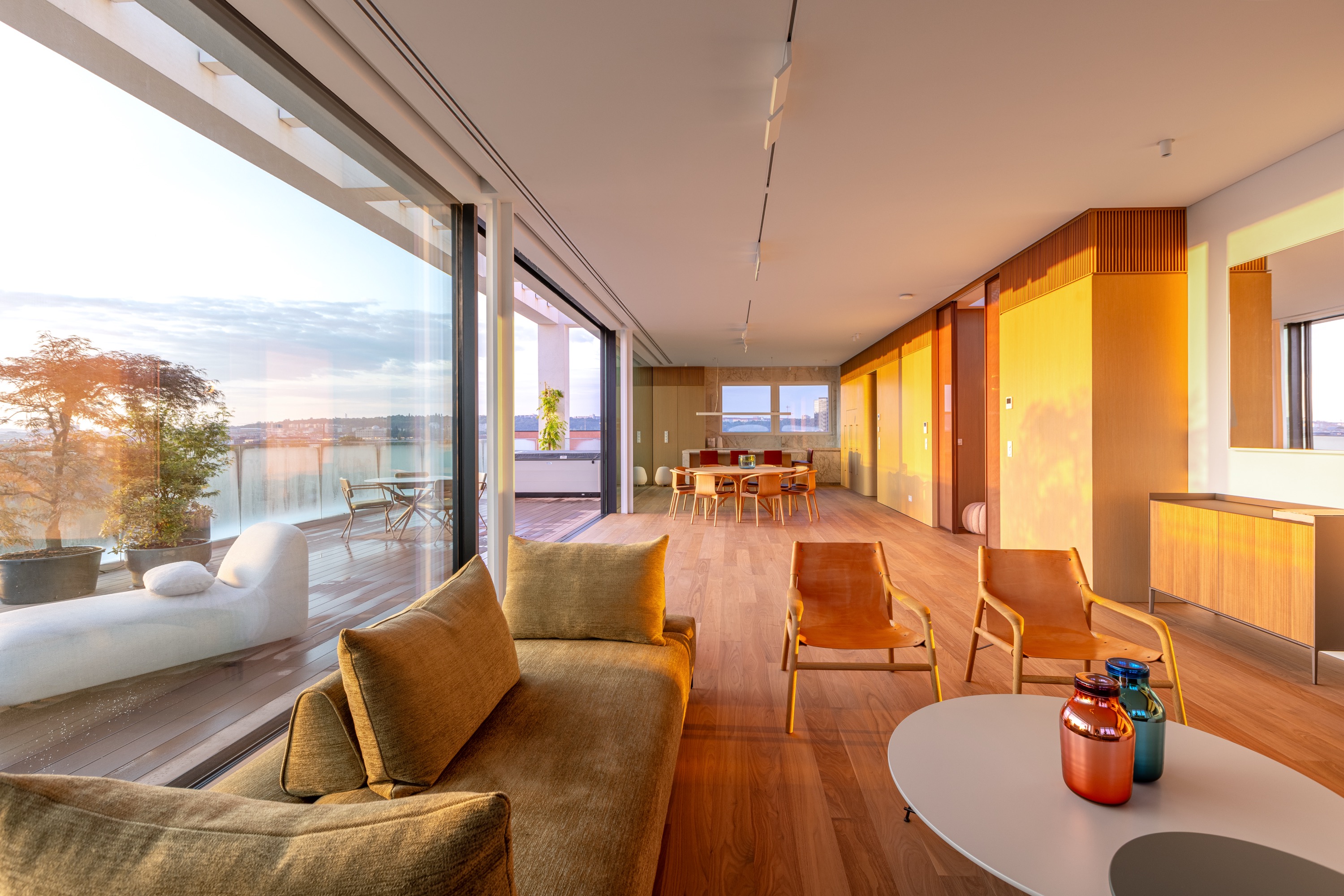 V tomhle penthousu je luxus doslova ve vzduchu – kamkoliv pohlédnete, dýchá na vás harmonie celku. Velkorysý a prosvětlený prostor umocňuje pocit volnosti, takže se tu žije v rytmu světla a výhledu, který nikdy nezevšední.