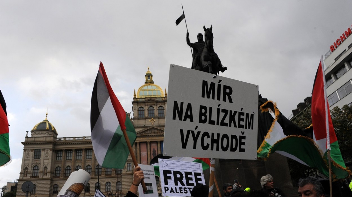 Dvě až tři stovky lidí s palestinskými vlajkami se dnes odpoledne sešly v horní části pražského Václavského náměstí na demonstraci kritizující odvetné kroky Izraele v Pásmu Gazy po útocích palestinského hnutí Hamás z minulého týdne. V reakci na shromáždění na náměstí dorazila i skupinka asi dvaceti lidí s vlajkami Izraele, mezi kterými byla i ministryně obrany Jana Černochová (ODS). Ta ČTK řekla, že Izrael vede obrannou válku, do které byl vtažen hnutím Hamás a jeho bezprecedentním vražděním obyvatelstva. Obě skupiny oddělili policisté, konflikty nenastaly. Že akce skončila bez incidentů, na sociální síti X potvrdil ministr vnitra Vít Rakušan (STAN), policie zasahovat nemusela. Opětovně se Rakušan ohradil proti požadavku preventivně akci zakázat, legislativa podle něj takový postup neumožňuje.
